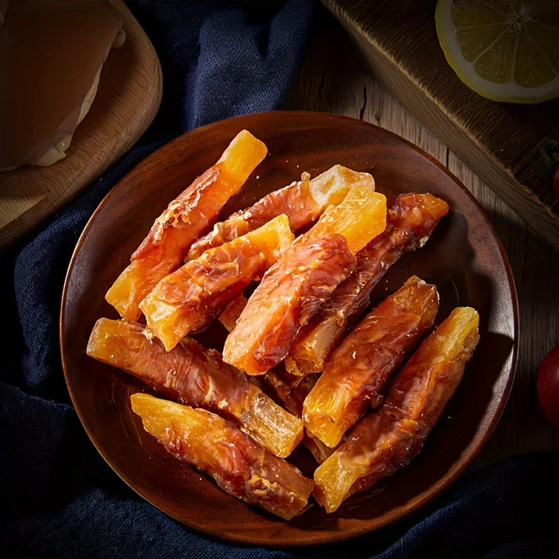 Wholesome, delicious treats made with real chicken and sweet potato, crafted to be high in protein, easily digestible, and full of natural flavor — perfect for dogs of all sizes.